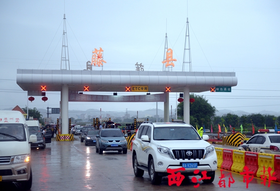 4月20日,車輛緩緩通過梧貴高速公路的藤縣收費站。 本報記者 蒙紹松/攝