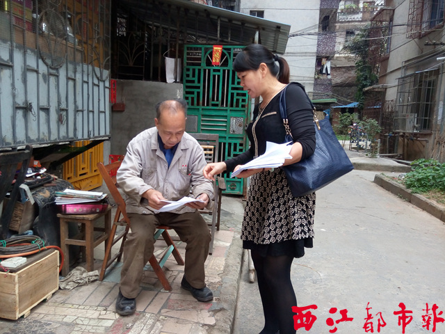 ????西江都市報訊 (記者 吳艷虹 文并攝) “你好,我們是東山社區的工作人員,社區即將開展棚戶區改造綜合整治,主要包括對堵塞的大渠清淤、綠化改造等,希望能得到大家的支持。”4月23日,東山社區的工作人員入戶宣傳棚戶區改造(綜合整治類)項目,了解居民的意見和建議,希望在改造過程中及完工后,居民都能積極配合與支持,共同維護良好的社區環境。