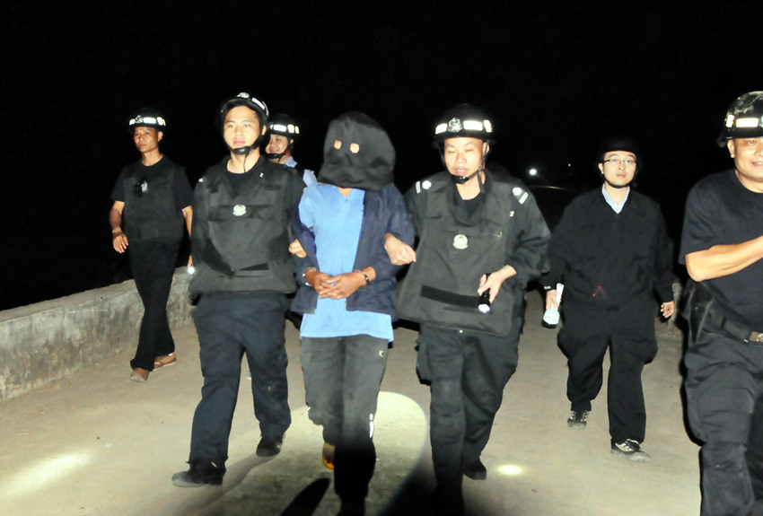 圖為民警進(jìn)村抓捕犯罪嫌疑人
