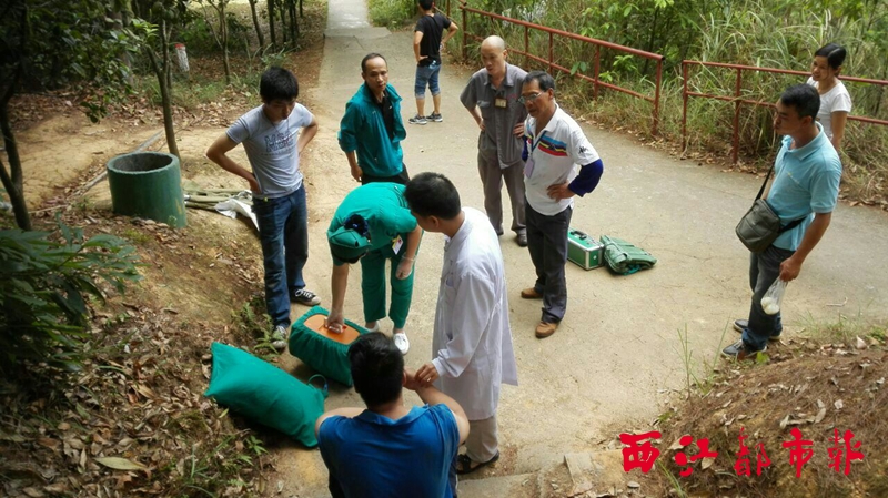 ????西江都市報訊(記者 謝韻 通訊員 何岸)4月29日,在白云山景區(qū)管理的百步梯上,有一名男子疑因運動過度而暈倒。隨后,景區(qū)管理處工作人員抬擔架趕到現(xiàn)場對游客進行救助的同時,撥打了120急救電話。在工作人員以及山友等的幫助下,十多分鐘后,游客恢復了意識,并與朋友一同離開了景區(qū)。