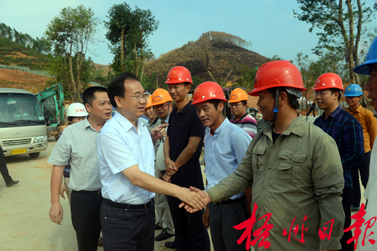 5月1日,朱學(xué)慶來到園博園工程施工點,看望慰問施工人員,送上問候祝福。蒙紹松 攝