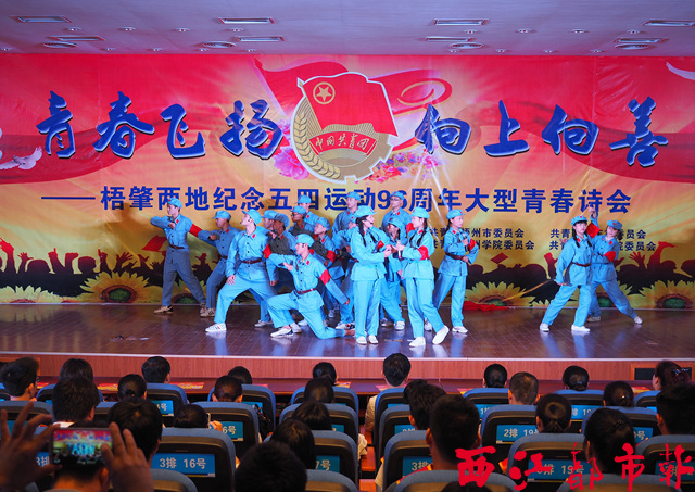 ????西江都市報訊(記者 吳艷虹 通訊員 李國慶)5月4日下午,由共青團梧州市委員會、共青團肇慶市委員會聯合主辦的“青春飛揚 向上向善”梧肇兩地紀念五四運動96周年大型青春詩會在梧州舉行。