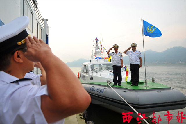 ????5月6日,剛入列梧州海事局“海巡10530”高海況巡邏艇首次升旗啟航。當日,梧州海事局新裝備的12米高海況巡邏艇“海巡10530”正式入列參與執法工作。