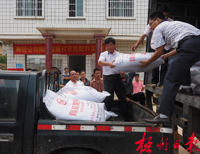 ????在捐贈儀式上,深塘村“兩委”干部召集村民有序領取有機肥料。“感謝神冠公司送肥料給我們,有了這些肥料我有信心種好果樹、增加收入。”村民蘇紹佳領了肥料后趕緊運回家里。