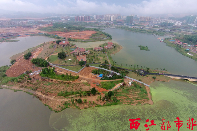 ??? 5月7日,從空中俯瞰建設(shè)當(dāng)中的玫瑰湖湖心島。隨著建設(shè)的不斷推進(jìn),玫瑰湖湖心島上部分建筑已經(jīng)完工,歐式的建筑風(fēng)格配合典雅的園林景致,呈現(xiàn)出一片園林美景,成為了不少市民新的休閑去處。西江都市報(bào)記者 何鎏/攝