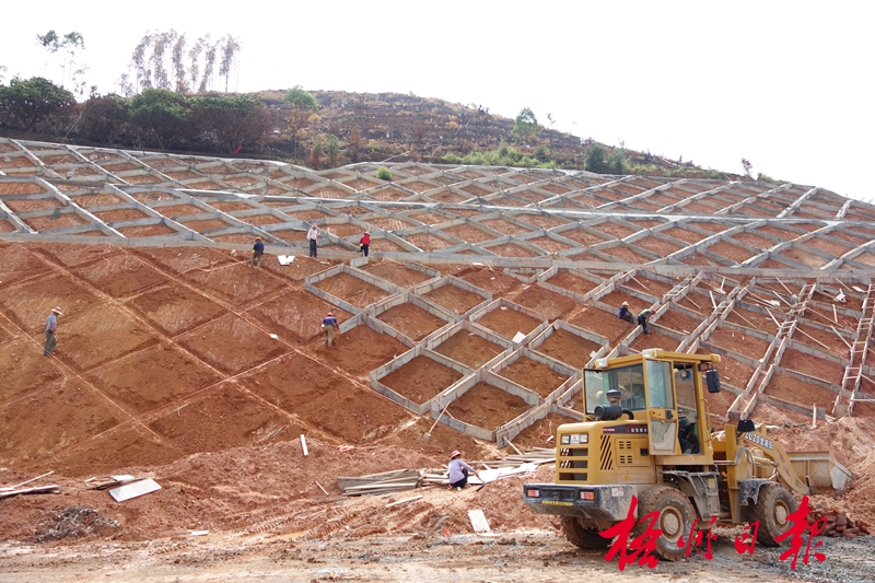 ??? 在蒼海新區園博園東部山體,護坡整治和綠化施工在同時進行。