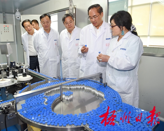 5月12日,自治區黨委常委、南寧市委書記余遠輝和南寧市長周紅波率該市黨政代表團,在梧州市委書記、市人大常委會主任黃俊華等領導的陪同下,到中恒集團制藥基地考察,了解企業生產經營情況。孟亞西 攝
