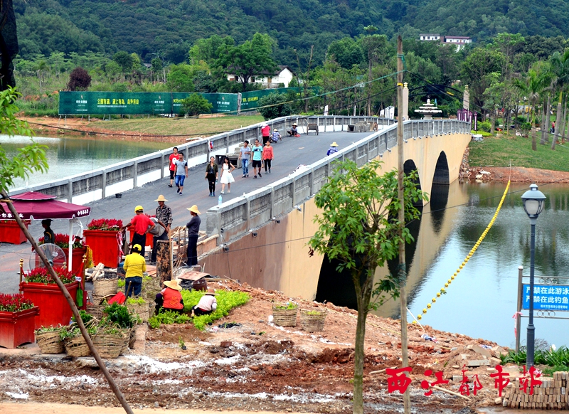 ????5月14日,市民通過天使橋往來于玫瑰湖湖心島與湖岸之間。近日,位于玫瑰湖公園內的天使橋建設基本完工,工作人員在對橋欄進行粉飾及安裝燈光線路等收尾工作。????