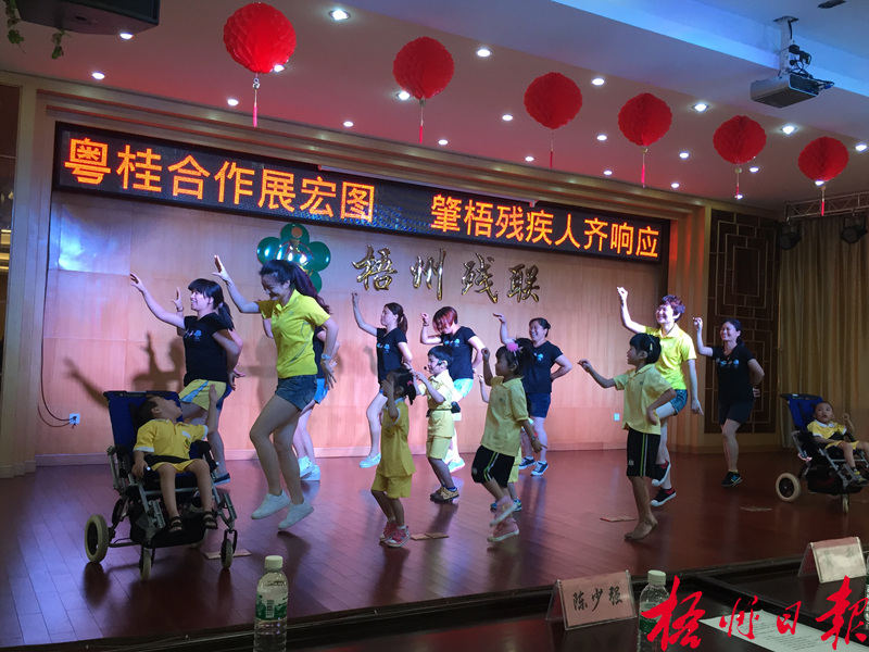 當天,“粵桂合作展宏圖,肇梧殘疾人齊響應”兩地殘疾人聯歡活動在梧州舉行,殘疾人朋友同臺表演、同場交流,加深情誼。楊苑君 攝
