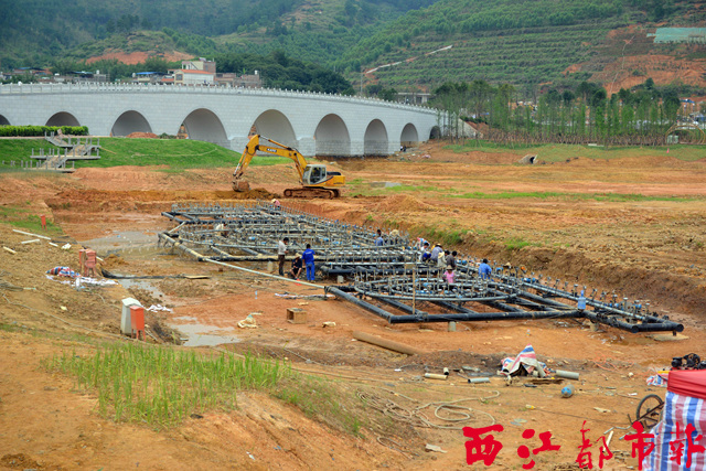 ????5月16日,工作人員在蒼海湖中進(jìn)行安裝鋪設(shè)噴泉系統(tǒng)的施工作業(yè)。目前,蒼海公園及園博園的建設(shè)正如火如荼,完工后水下噴泉將為蒼海公園增添新亮色。 西江都市報(bào)記者 蒙紹松/攝