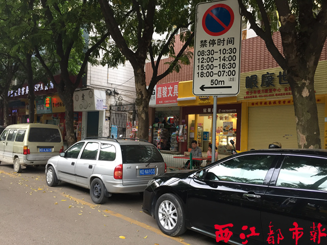 ????5月15日上午9時許,記者現場走訪發現,在工廠路小學門口兩側以及對面的道路上,交警部門設置了8塊高約3米的指示牌,標明該路段在8時30分至10時30分、12時至14時、15時至16時30分、18時至次日7時禁止車輛停放。盡管當時為禁止停車時段,但記者仍看到這些禁停區域幾乎停滿了車輛,而其中的十多輛已經被交警開出罰單。一名在附近工作的市民告訴記者,近段時間,交警每天上、下午都會來此巡邏,每次都會有不少車輛被罰。