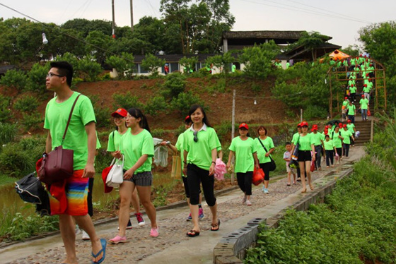 結束了石表山的游覽后,百人團繼續乘車前往桃園湖鄉村旅游區。一輪大雨后,帶來了清新與舒暢,滿園綠色的風光、掛滿枝頭的果實,引得游客頻頻拿起相機拍照,感嘆大自然的奇妙。爬山、游泳、摘桃子、吃農家飯,活動精彩多樣。