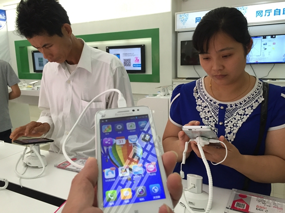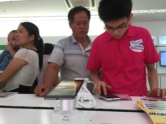 梧州移動首家手機網購O2O體驗店開業當天,不少市民前往該體驗店體驗購機新方式