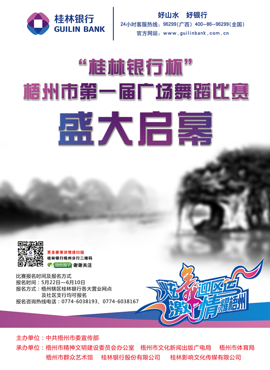 ????比賽報名時間及報名方式報名時間:5月22日—6月10日報名方式:桂林銀行梧州分行市內各大網點及社區銀行均可報名報名咨詢熱線電話:0774-6038193、0774-6038167