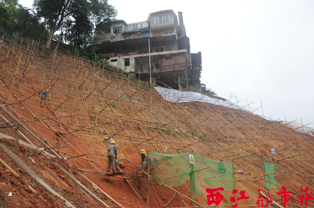 ???? 5月21日上午,施工人員在中山公園東側(cè)地災(zāi)整治一期工程施工現(xiàn)場,進(jìn)行山體易滑坡地帶邊坡加固施工。據(jù)了解,該工程總投資403萬元,目前已完成總工程量的25%,預(yù)計(jì)今年內(nèi)可全面完工。(蔣亞平/攝)