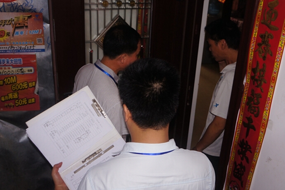 聯合執法隊的工作人員進戶對設備搬離情況進行核實 張超浩/攝