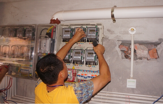 聯合執法隊的工作人員依法對未按要求搬離設備的住戶采取強制斷電措施 張超浩/攝