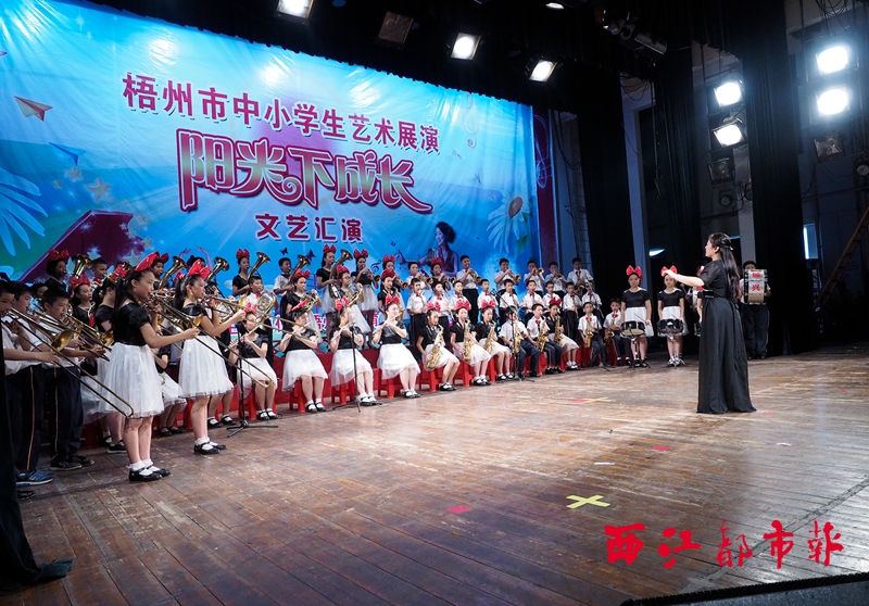 ????西江都市報訊(記者 萬立平 通訊員 華萍)5月28日,以“陽光下成長”為主題的2015年梧州市中小學生藝術展演在梧州市藝術劇院精彩上演,來自梧州市各區縣的近千名中小學生上臺施展藝術才華,彰顯青春風采。