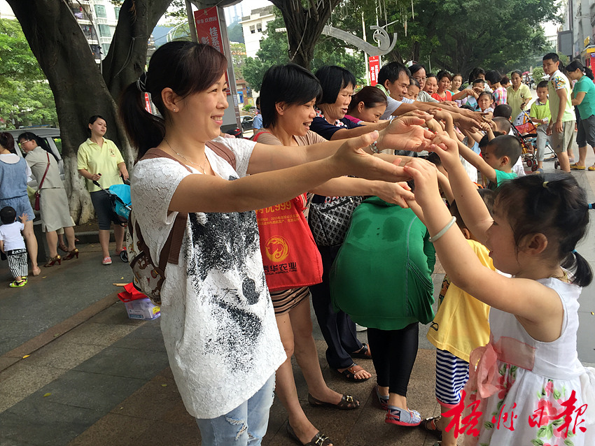 ??? 5月28日上午,在鴛江麗港廣場,孩子們正在玩“火車穿隧道”、“友誼接力賽”等游戲。