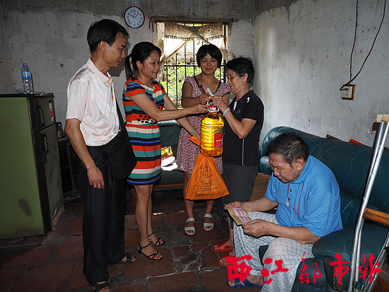 ??? 當天,梧州市新華書店有限公司、大塘街道辦事處以及大塘社區的工作人員為勞寧生一家送去了200元的慰問金以及一些慰問物品。 陳建新/攝