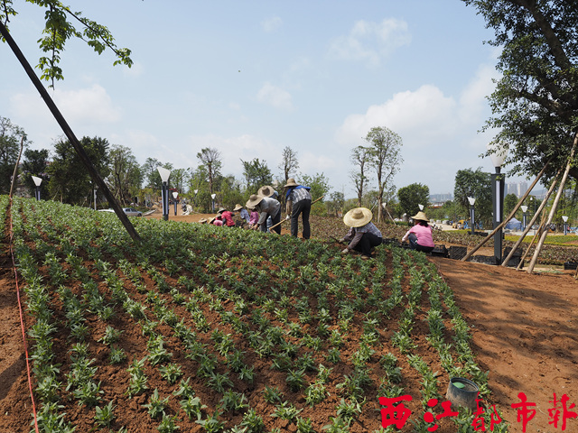 ??? 6月3日,在蒼海新區園博園內,施工人員頂著烈日加緊綠化種植。隨著各個園區和景點施工進入沖刺和收尾階段,施工人員克服連日高溫天氣,積極推進綠化工作。西江都市報記者陳健新/攝