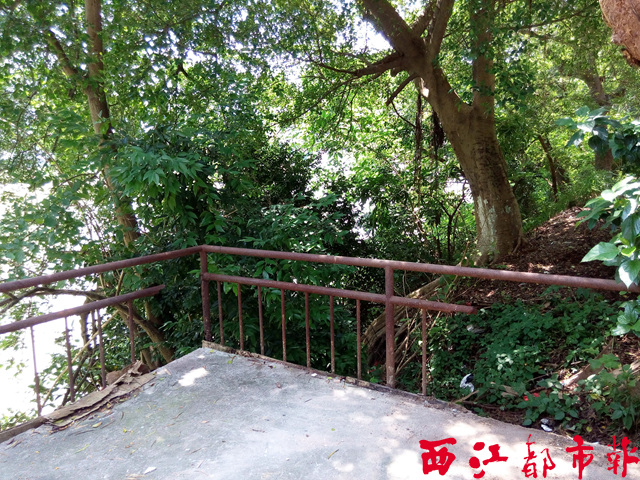 ????隨后,記者沿著鴛江路往富民方向走,看到位于桂江游泳場(chǎng)上方的欄桿也有幾處遭到損毀。有兩根鐵管缺失,其中一處僅僅用竹子充當(dāng)臨時(shí)欄桿。據(jù)記者觀察,位于水上泳場(chǎng)上方約有五處欄桿已經(jīng)不同程度損毀。