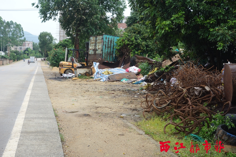 糯垌鎮古蘭村的公路旁,堆積著一堆廢舊垃圾。