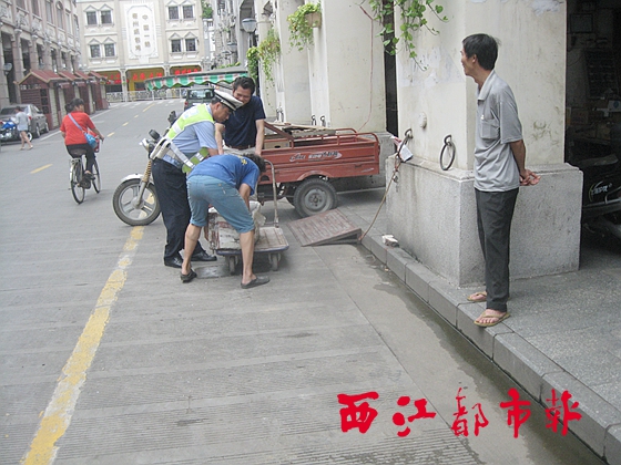 ??? 西江都市報訊 (記者 楊珊 通訊員 陳利) 為了方便自己,利用石墩、廣告牌、木板等障礙物私占公共停車位,是梧州市不少商家存在的違法行為,引起了市民的普遍反感。為此,萬秀交警大隊近日開展了專項整治行動,對商家私占公共停車位的障礙物進(jìn)行強(qiáng)制清理,還“位”于民。