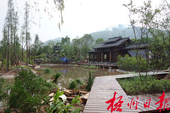????來到南寧展園,你會被一種獨特的民俗文化風情和原生態(tài)山水歡歌畫卷所吸引。黑亮渾厚的仿古木老邕街牌坊和位于展園中心、同樣格調(diào)的干欄式主建筑相互呼應(yīng),給整個展區(qū)定下了鮮明的壯家山寨民俗文化特色主基調(diào)。展園里,以朱槿、杜鵑、茉莉、紫薇為主要花團配以雕塑形成的景觀組團,以及層層跌落的溪流、變幻流動的綠島、隱約可見的小橋,還有遠處極具壯鄉(xiāng)特色的連理亭,悠然展現(xiàn)出壯鄉(xiāng)民間對歌的美好場景和浪漫情懷,營造出屬于壯家幸福味道的生活氛圍。據(jù)了解,南寧展園的造園主題是“天下民歌,眷戀邕城”。再細細品看,就會發(fā)現(xiàn)展園里的景石、景墻、裝飾小物件等各處都有著對民歌文化的細心解讀,用心良苦地在詮釋著生態(tài)版的“大地飛歌”。