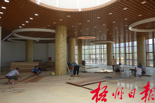 近日,在園博園游客接待中心二樓,精品花卉展的展臺制作工作正在加快推進。精品花卉展是第六屆廣西園博會的主要展會活動之一,將集中展示全區各地市選送的精品花卉作品。相關的展臺布置和作品布展工作將在園博會開幕前完成。梁萍 攝