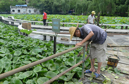 潘塘公園蓮花池汀步兩旁安裝護(hù)欄