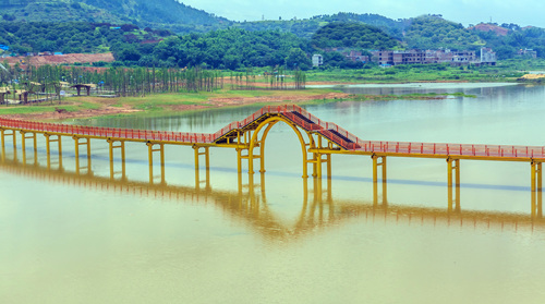 ????在跨湖橋的東側,第一個城市主題園區就是梧州、玉林、賀州、貴港4個城市組成嶺南文化園,以地理環境、人文習俗以及建筑、庭院布局形式體現秀麗嶺南風情。今年,梧州作為承接園博園的主辦城市,不得不說梧州園的特別。一是梧州園是城市展園中面積最大的園區,二是梧州園的地勢是城市展園的最高點,登上主題建筑的二樓觀景平臺,可以飽覽四周景致。