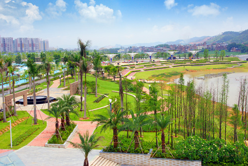????本屆園博園將城市展園區的主題定位為“山水之間,民族風情”。與往年不同,今年全區14個城市共分為四個分區,分別是嶺南文化園、山水生態園、特色民族園、海濱風情園。城市展園片區還充分利用蒼海湖本來的地勢,層層拾階而上,利用地勢和植物點綴的手法,各個園區主題風格明顯又渾然一體。
