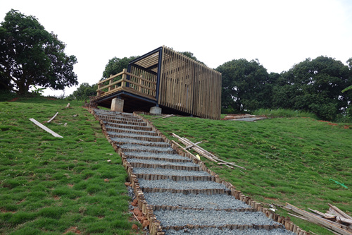 ????在跨湖橋的西側,階梯休憩性景觀已經基本建成,設置于湖上的音樂噴泉設施設備也已安裝好。音樂噴泉長60米、寬12米,設計有噴頭339只,水下彩燈345只,室外音響12只。看著這些數據,眼前很自然地浮現起我們熟悉的南寧南湖公園音樂噴泉的美輪美奐,以后,梧州也可以有如此精彩的噴泉演繹了。當音樂噴泉開啟,60米高的主水柱一沖而起,配合著燈光、音樂、水向,必定是一場效果震撼的視覺大餐和聽覺享受。