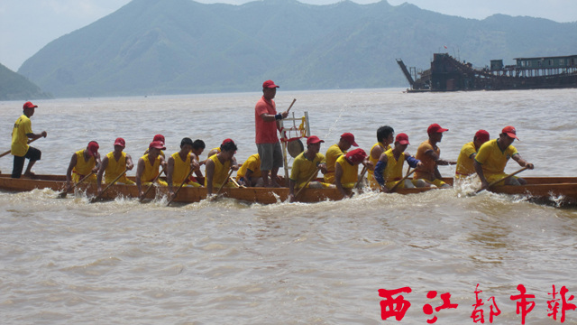 ????午飯過(guò)后,一聲清脆的鑼聲傳來(lái),隊(duì)員們馬上又投入到訓(xùn)練中。在烈日照耀下,只見(jiàn)隊(duì)員們揮動(dòng)著有力的臂膀,船槳起落間,江面濺起了陣陣水花。劉金全說(shuō),今年的“龍船水”來(lái)勢(shì)洶洶,這對(duì)于所有的龍舟隊(duì)伍而言既是一個(gè)機(jī)會(huì),也是一個(gè)考驗(yàn)。