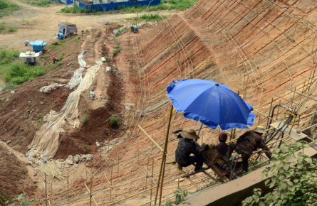 在河?xùn)|防洪堤上,來自藤縣六坊舊環(huán)的龍先生帶著他價(jià)值5000元的望遠(yuǎn)鏡,津津有味地觀看比賽。