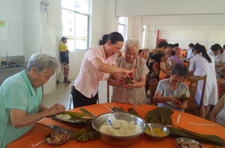 今年已經(jīng)84歲高齡的化婆婆拄著拐杖,興致勃勃地看著江中正在激流勇進(jìn)的龍舟。