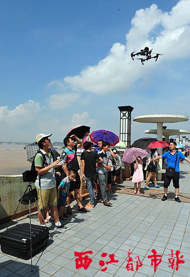 龍舟賽當(dāng)天,一群攝影愛好者用小型遙控飛機(jī)為這次比賽進(jìn)行航拍。只見他們分工合作,有的操控飛機(jī),有的不斷調(diào)整實(shí)時(shí)動(dòng)態(tài)畫面。飛機(jī)調(diào)整不同的拍攝角度,把賽事過程和觀眾的熱情攝錄其中。