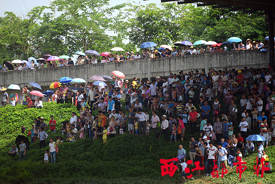 龍先生說,這臺(tái)望遠(yuǎn)鏡可以清晰地看到西江對(duì)面岸邊上的景物。“我今天特意帶著這個(gè)寶貝來,就是等到龍舟經(jīng)過時(shí),可以很清楚地看到各隊(duì)的參賽者。”和龍先生一起的幾個(gè)老鄉(xiāng)表示,此次大賽他們村里也有龍舟參賽,他們要在岸上為參賽的鄉(xiāng)親們吶喊助威。