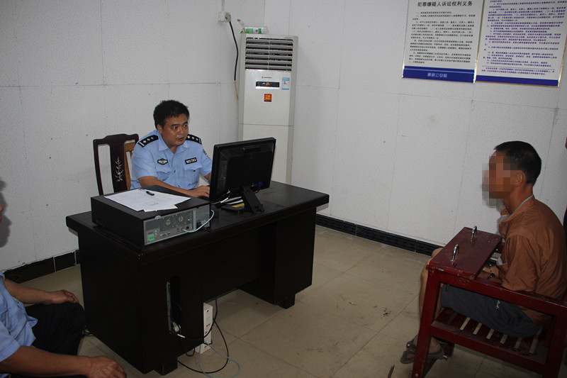 民警連夜對抓獲的吸毒人員進行審訊。
