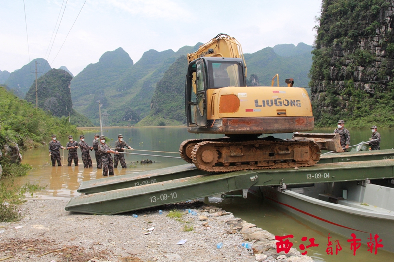 ????西江都市報訊 6月19日,梧州陸軍預備役工兵團接廣西軍區命令:出動門橋裝備趕赴河池大化縣參與搶險救災。受領任務后,該團立即組織人員裝備,通過近9個小時500多公里的長途奔襲,于20日凌晨2時30分到達大化縣城,經過簡單的休整后,又馬不停蹄的趕往救災地點六也鄉,隨后部隊迅速展開救援行動。