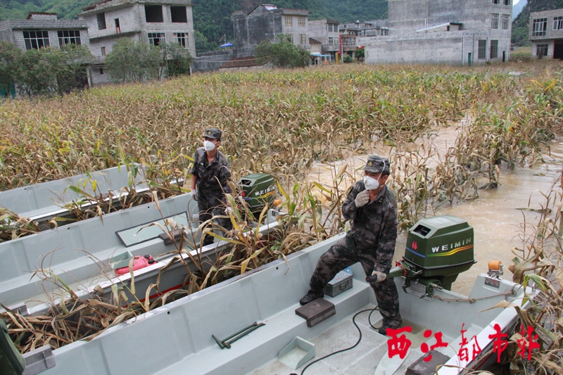 官兵在復雜水域內探查險情。