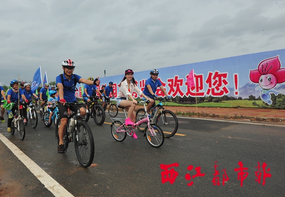 騎行愛好者在園博園內進行“與低碳邂逅”蒼海綠色騎行。西江都市報記者 陳健新/攝