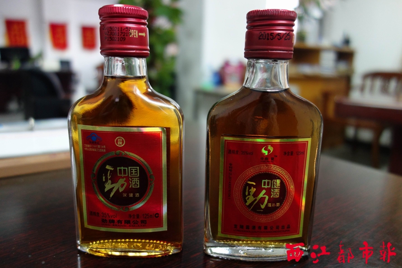 左為真品“中國勁酒”,右為傍名牌的“中健勁酒”。