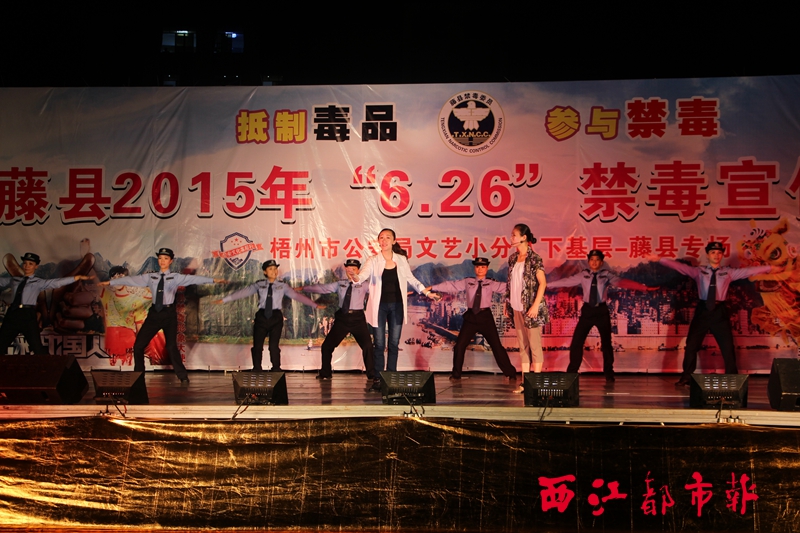 ????當(dāng)日是第28個國際禁毒日,藤縣禁毒辦和藤縣公安局聯(lián)合在藤州文化廣場舉行禁毒宣傳晚會,將禁毒工作寓于精彩的節(jié)目表演中,為父老鄉(xiāng)親上了一場別開生面的禁毒教育課。