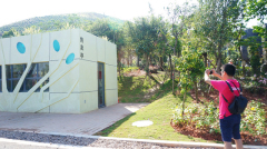 作為園博園內城市展園的配套設施,售賣亭的位置設計得非常“貼心”,總是緊挨著各園區。加上特意設計的獨特造型,乍看上去還以為是某個園區的建筑物之一。藏寶人發現這處“好地方”后,先是在附近勘探拍照,后又隔著玻璃觀察情況,藏寶軍師上前偷偷瞄一眼,發現藏寶人正把亭內方位拍下來。難道,寶藏線索將藏在這里?