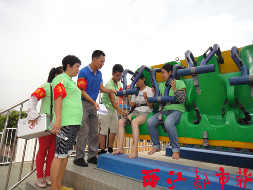 西江都市報訊 (記者 龍?zhí)靷?通訊員 鄒鎮(zhèn)安) 7月2日上午,梧州市質(zhì)監(jiān)局、市質(zhì)監(jiān)局稽查局在玫瑰湖主題樂園舉行大型游樂設(shè)施事故應(yīng)急救援演練,旨在提高群眾對突發(fā)情況的應(yīng)對能力。