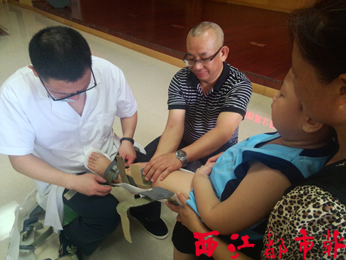 西江都市報訊 (記者 黃穎盈 通訊員 邱興安 楊貴仙) 7月2日早上,廣西壯族自治區輔助器具中心的技術人員在梧州市殘疾人綜合服務大樓,為梧州市受國家專項彩票公益金兒童矯形器項目資助的患者,開展現場裝配工作。