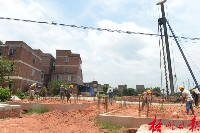 ????7月3日,在長洲區正陽村正陽南北堤移民安置點,施工隊正開展房屋基礎施工。