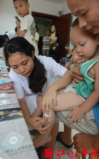 ????7月13日,在梧州市婦幼保健醫院,醫生正在為孩子貼上膏藥。 當天,盛夏“三伏天”進入了“初伏”,不少市民群眾來到市婦幼保健醫院,接受“三伏天灸”。 (李鴻榮 韋曉燕 攝影報道)